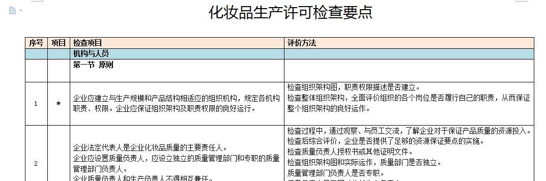 法規針對二證合一過程,考核化妝品廠是否規范的標準。也是生產的操作指導書。很多廠都都以此『圣經』,要是各部門落實。